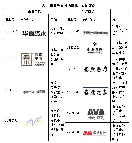 那么究竟多么近似的商标可以被商评委准予共存呢?为了给大家一个感性认识,笔者举几个成功共存的例子供大家参考(请见表1)。