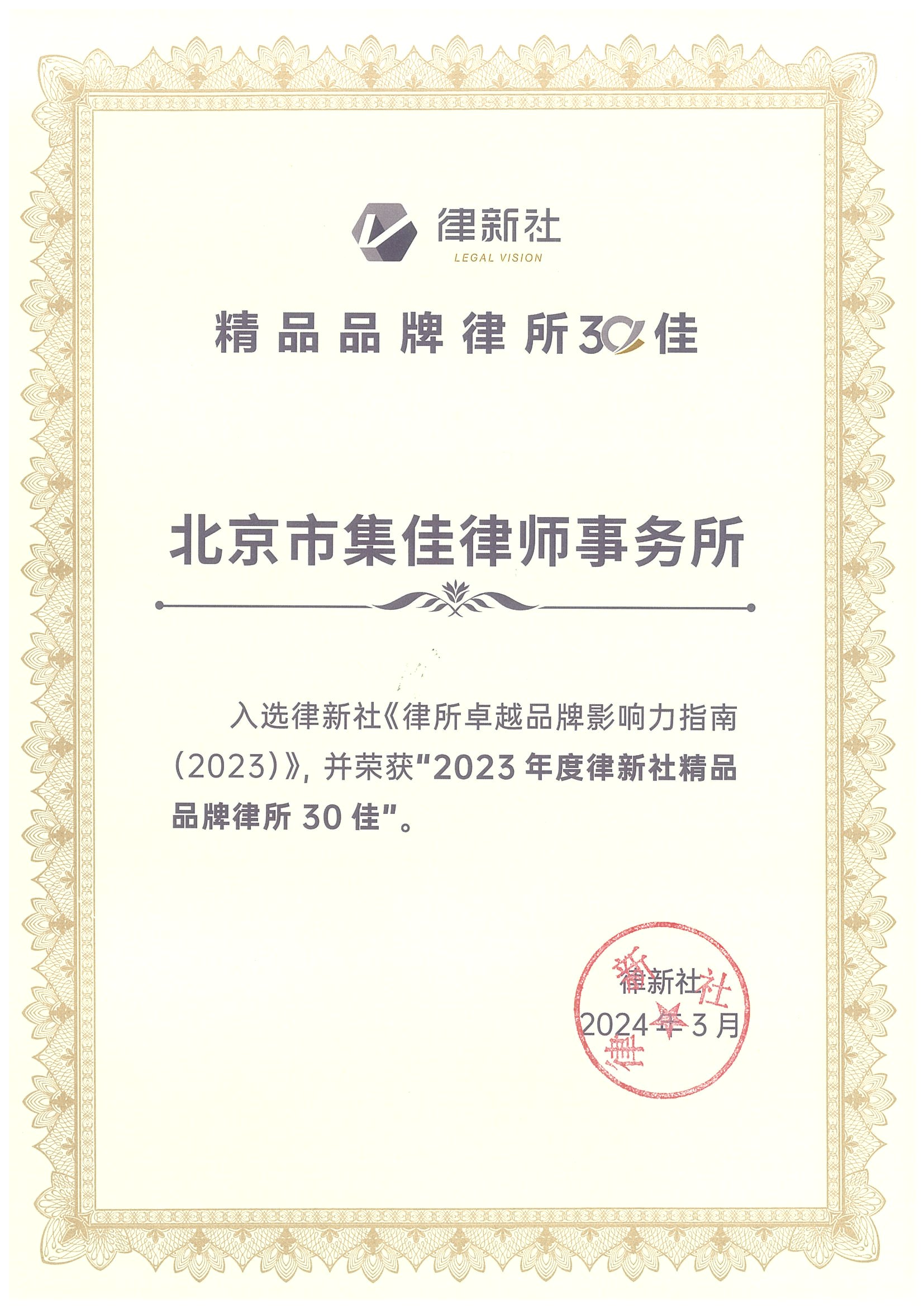 28圈入选 “2023年度律新社精品品牌律所30佳”
