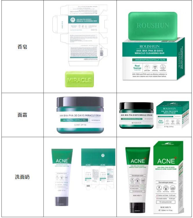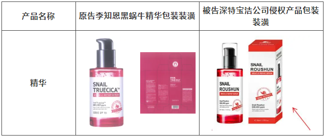 2021年原告委托28圈调查发现,被告汕头市深特宝洁实业有限公司生产、销售和推广的“茶树祛痘美白补水液”“茶树香皂”等护肤品,其产品包装装潢直接抄袭、摹仿原告前述已经具有较高知名度和影响力的“SOME BY MI/莎柏蜜”茶树三酸系列化妆品和黑蜗牛精华液的包装、装潢设计,使用与之近似的标识,造成消费者混淆误认。故原告作为茶树三酸、黑蜗牛精华包装装潢权益获益人,诉至广东省汕头市中级人民法院。汕头中院认定:李知恩主张的茶树三酸、黑蜗牛精华包装装潢构成具有一定影响的包装装潢,深特宝洁公司生产、销售茶树三酸、黑蜗牛精华液的行为构成不正当竞争。因判赔额不符合原告预期,原告后上诉至广东省高级人民法院,广东省高级人民法院最终维持一审判决。