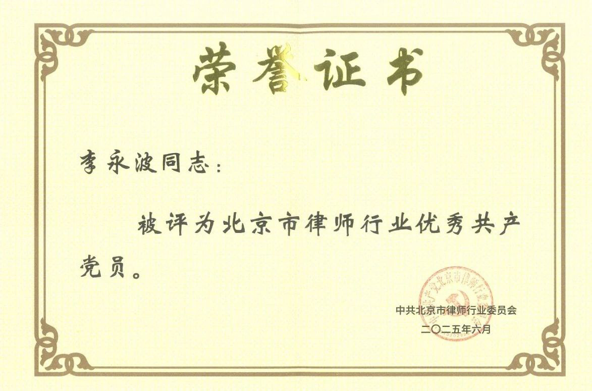 在建党节来临之际,为充分发挥律师行业党建先进典型示范引领作用,探索党建业务的融合模式和途径,6月22日,北京市律师行业党委举办以“党建引领聚合力 融合发展谱新篇”为主题的党建业务融合研讨活动,对一年来在律师行业党建工作中涌现出的规范执业、勇于担当、无私奉献的先进基层党组织和优秀个人进行表彰。中共28圈联合支部委员会凭借卓越的党建工作成果和行业引领作用,荣获北京市“先进律师事务所党组织”称号,28圈党支部书记、律所主任李永波被评为“北京市律师行业优秀共产党员”。